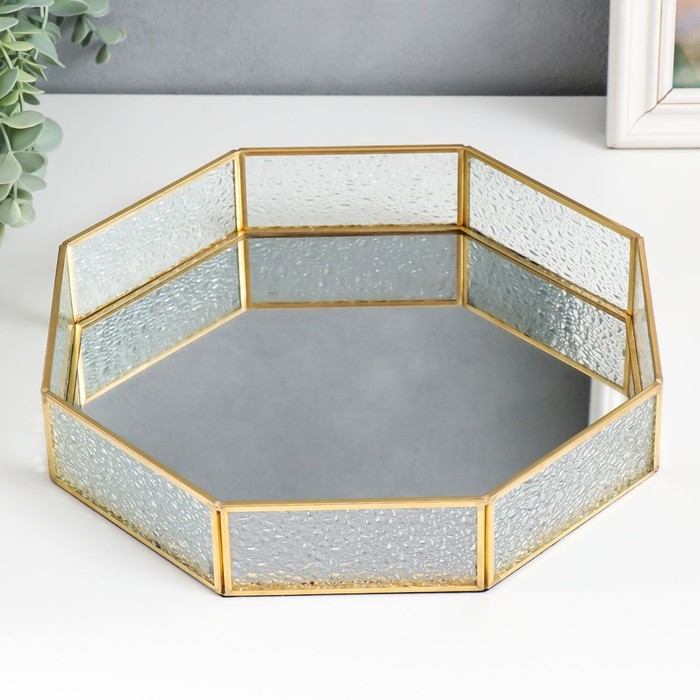 Подставка интерьерная стекло с зеркалом "Многогранник. Капли" 28х28х5,5 см