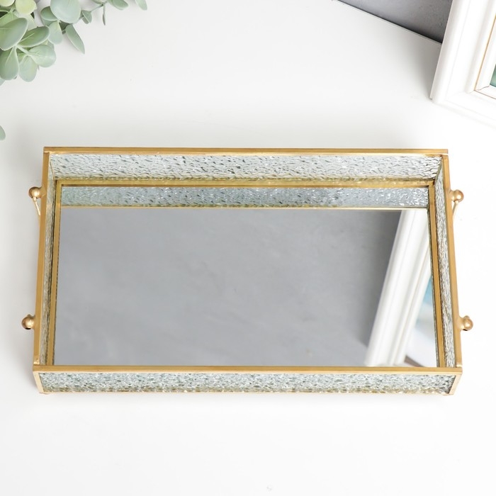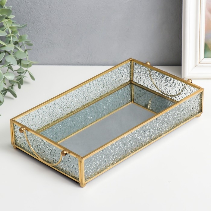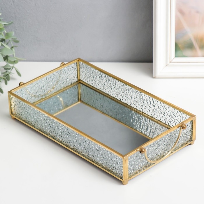 Подставка интерьерная стекло с зеркалом прямоугольная "Капли на окне" с ручками 5х14х24 см