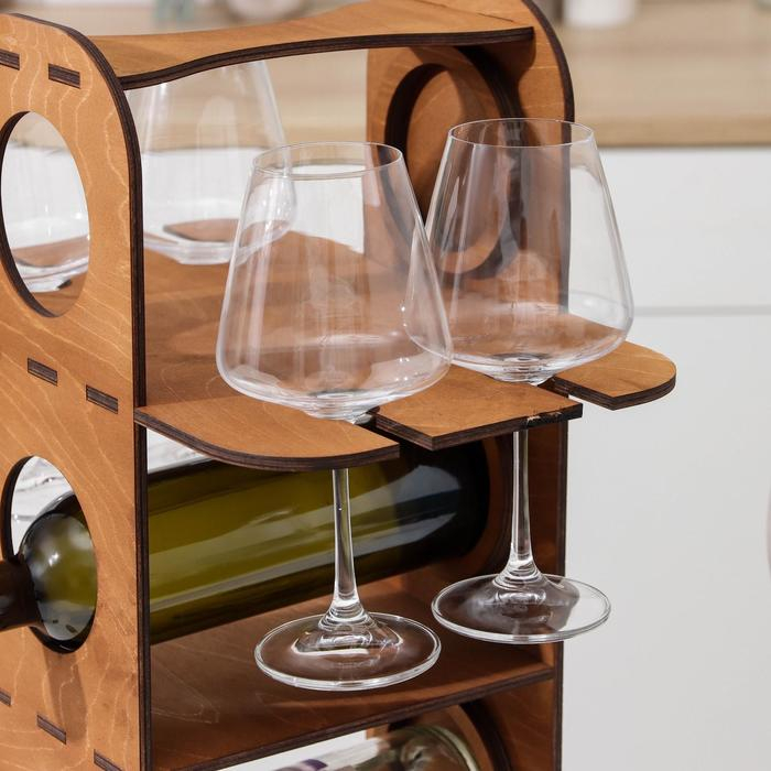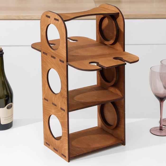 Подставка-минибар под 3 бутылки и 4 бокала, 35×23×48 см