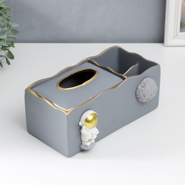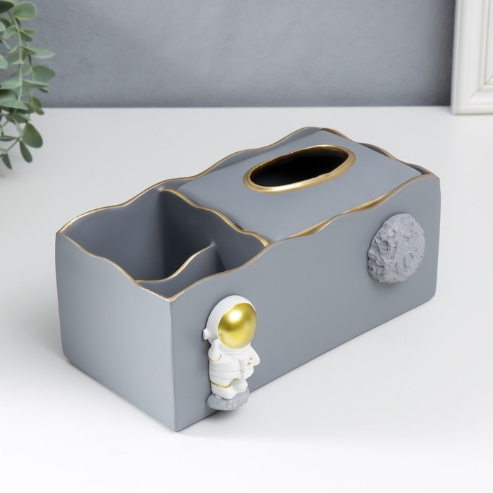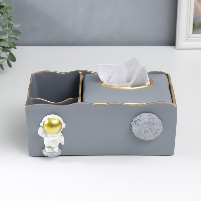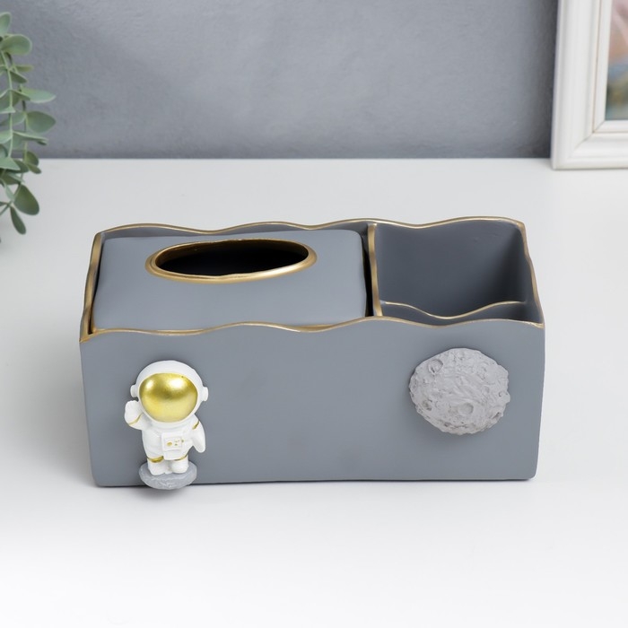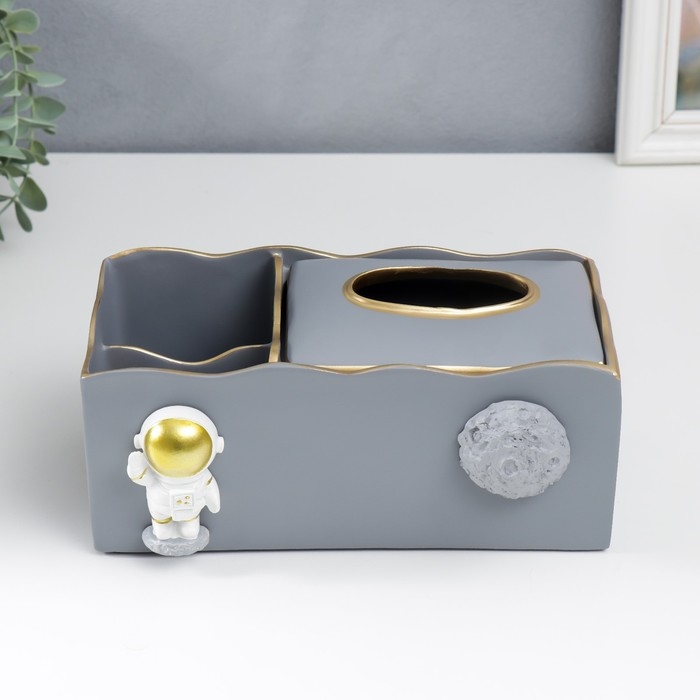 Подставка+салфетница полистоун "Космонавт" серый 9,5х12х24 см