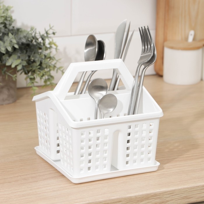 Подставка под столовые приборы «Лофт», 15×16×16 см, цвет белый