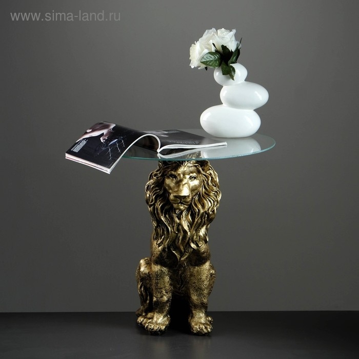 Подставка - стол "Лев сидя", бронза 57см ПОЛИСТОУН