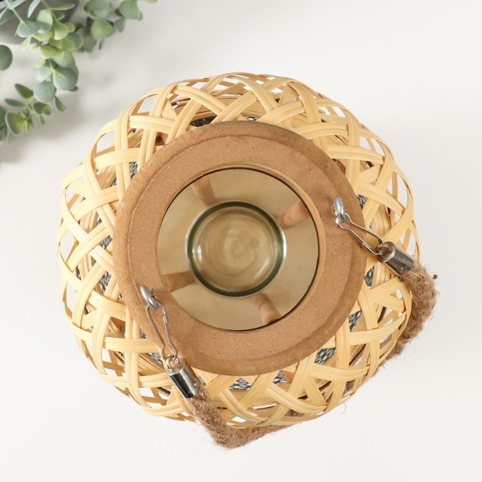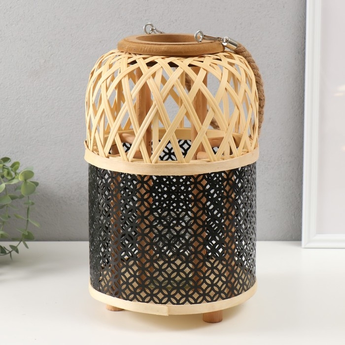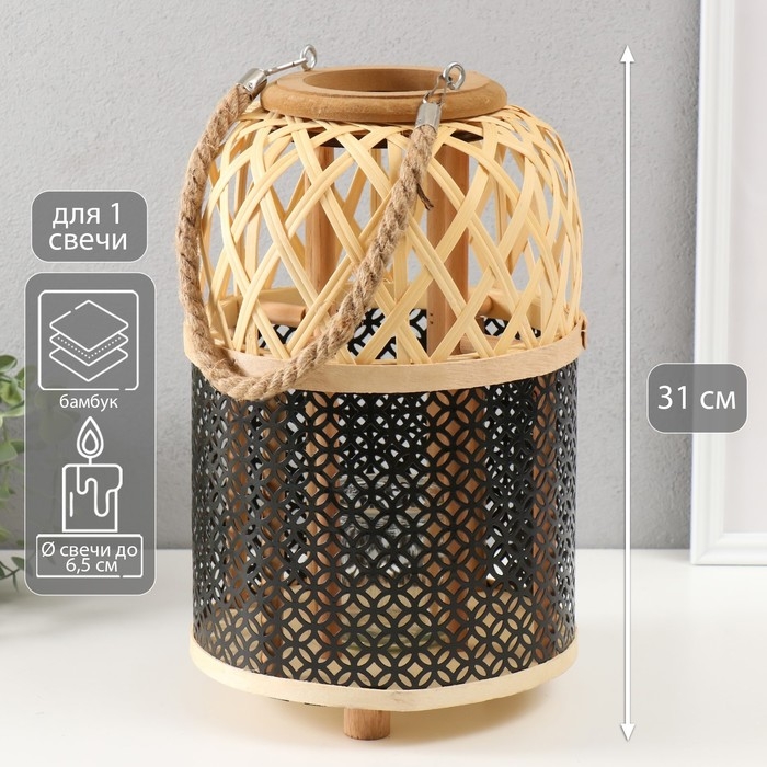 Подсвечник бамбук, металл "Фонарик. Сеточка" 31х21,5х21,5 см