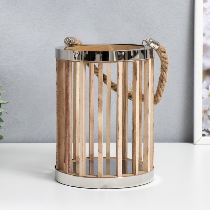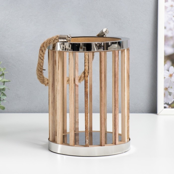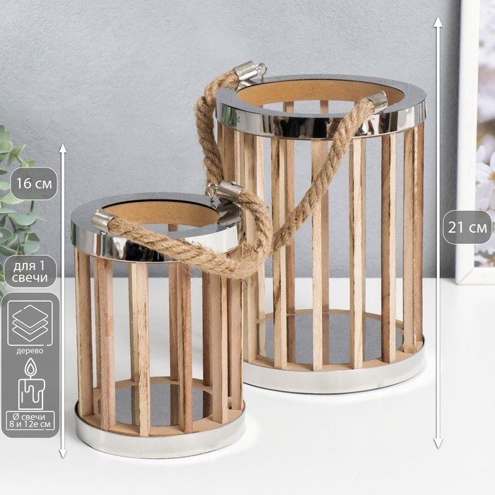 Подсвечник дерево "Цилиндр - рейка" набор 2 шт 15х15х21, 11,5х11,5х16 см