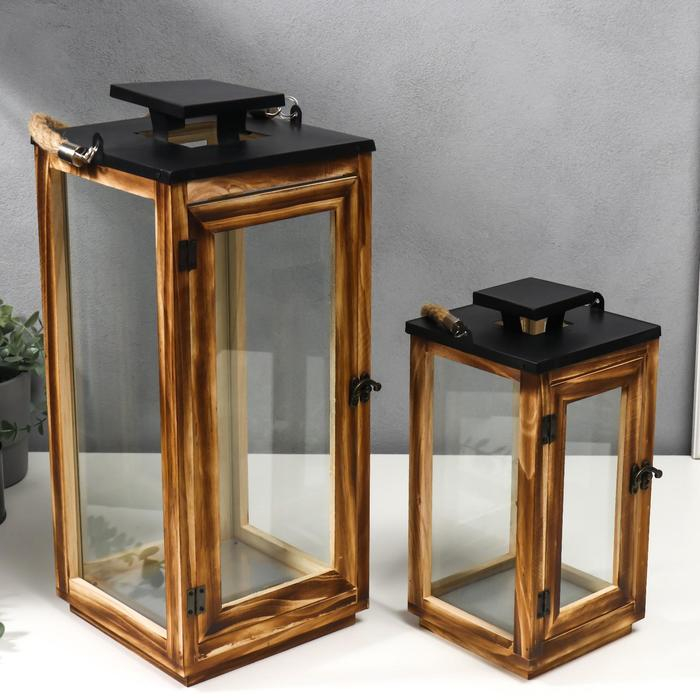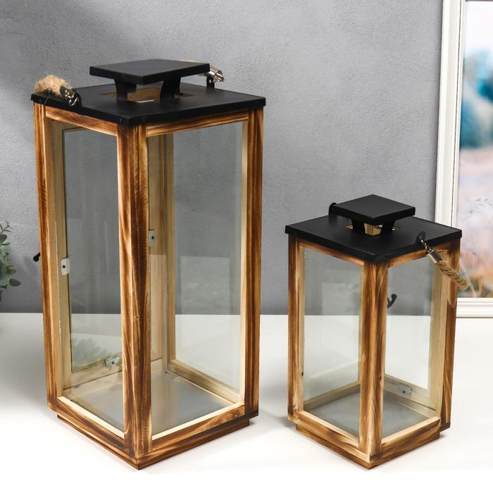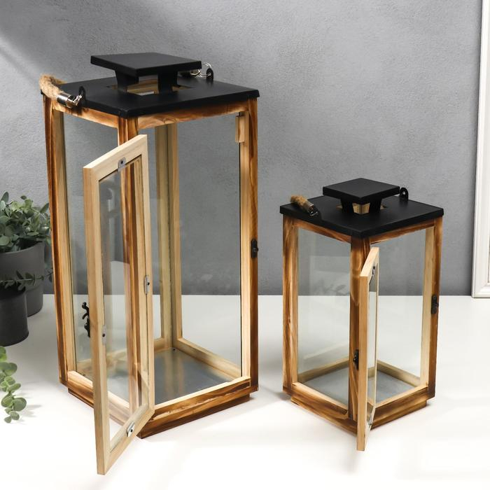 Подсвечник дерево "Лаконичность" набор 2 шт 31х15х15 49х20х20 см