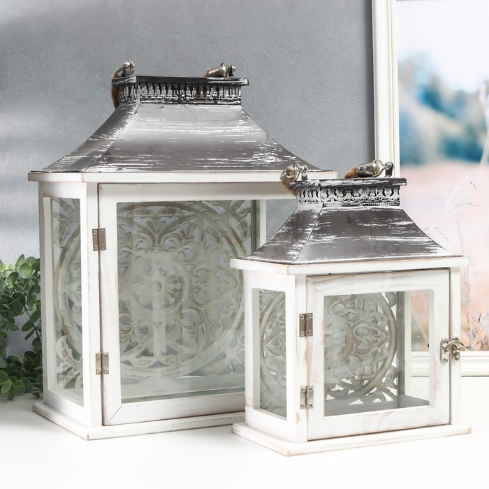 Подсвечник дерево "Медальон лепнина" набор 2 шт 29х22х13 см, 47х19х31 см
