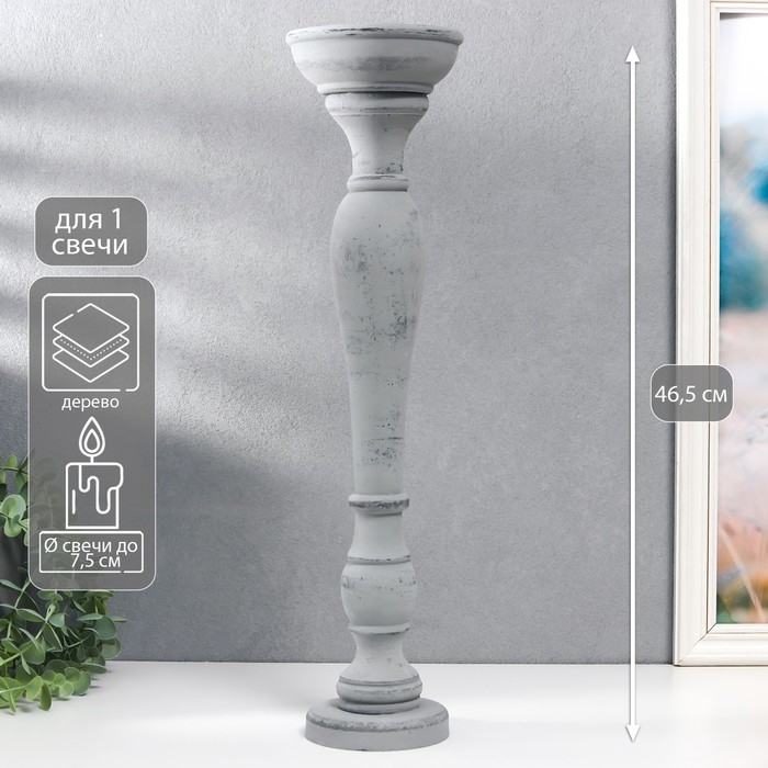 Подсвечник дерево на 1 свечу "Элегант" серый состаренный 46,5х11,5х11,5 см