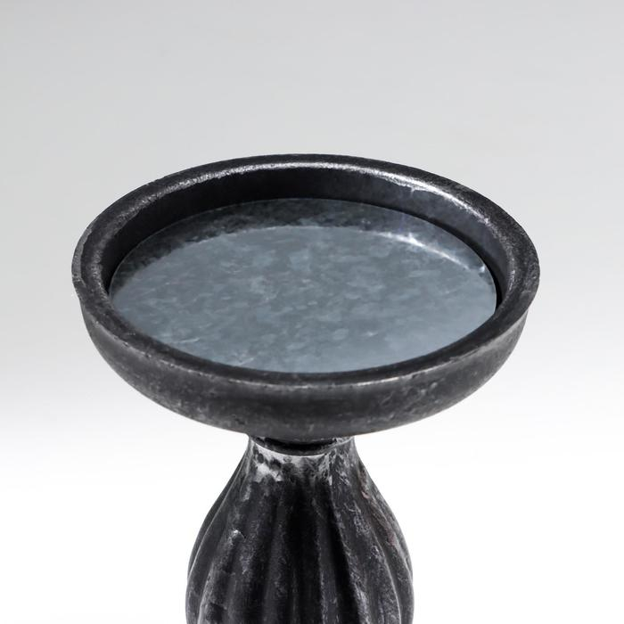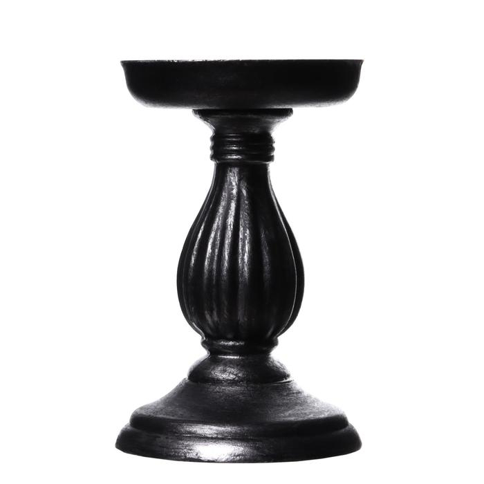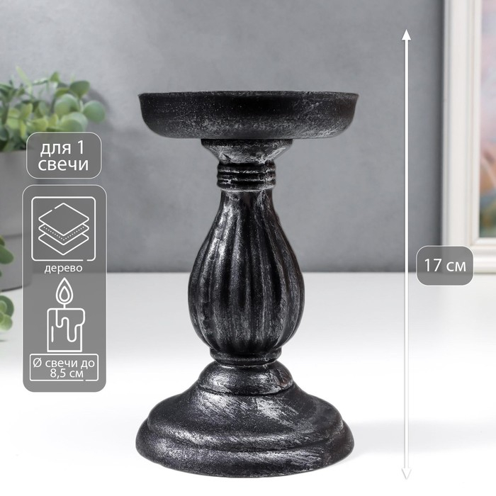 Подсвечник дерево на 1 свечу "Фердинанд" чёрный с серебристой патиной 17х10,5х10,5 см