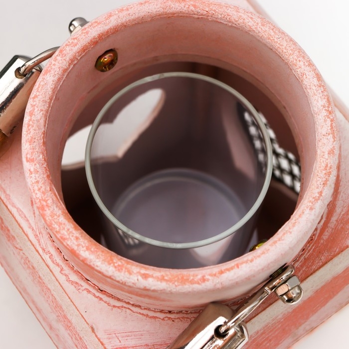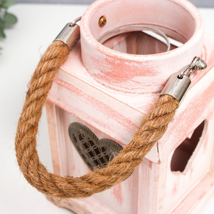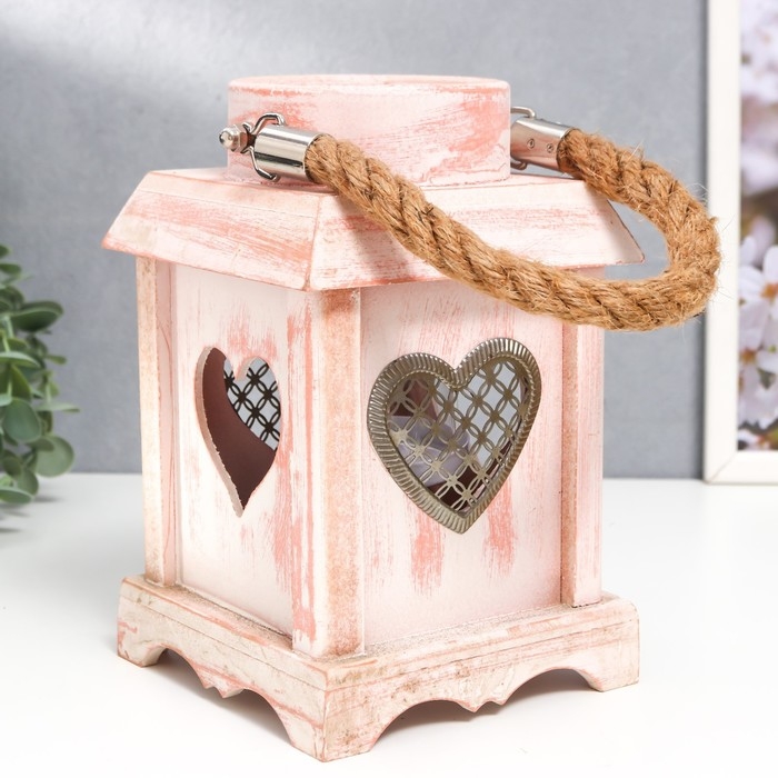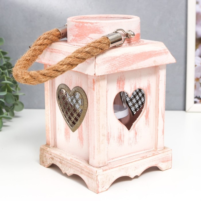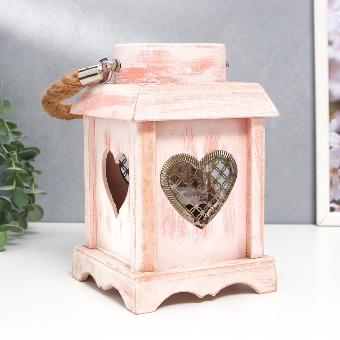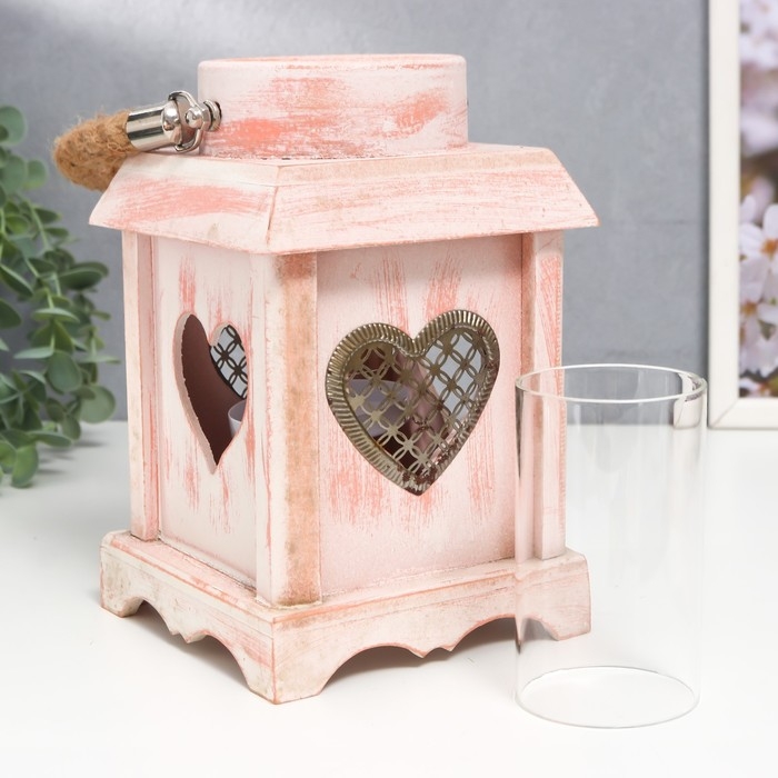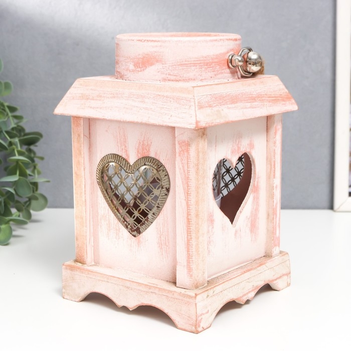 Подсвечник дерево на 1 свечу "Фонарик с сердцем" с ручкой 20х12х12 см