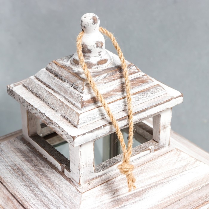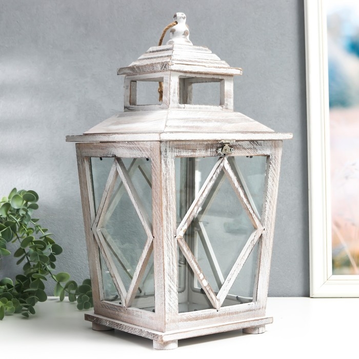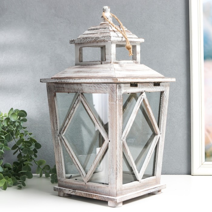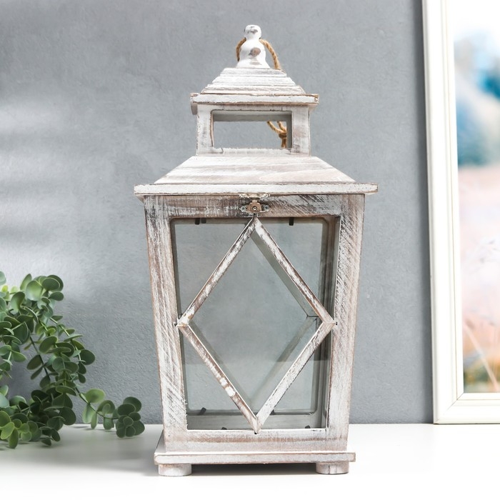 Подсвечник дерево на 1 свечу "Ромб на фонарике" коричневый состаренный 40х20х17 см