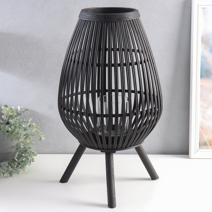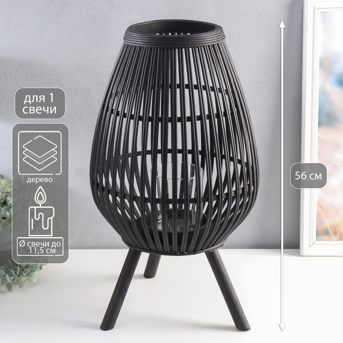 Подсвечник дерево на 1 свечу "Вазон" чёрный на ножках 32х32х56 см