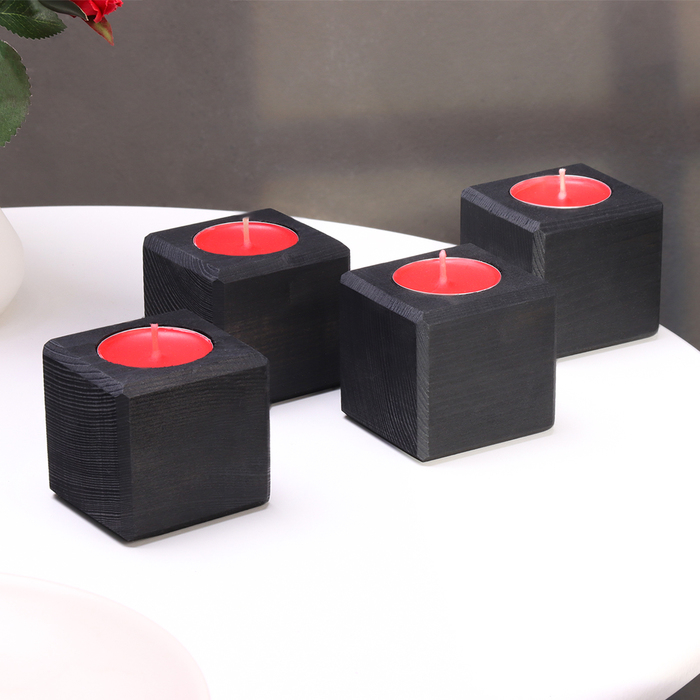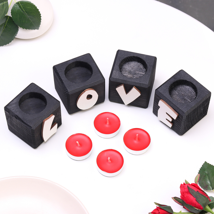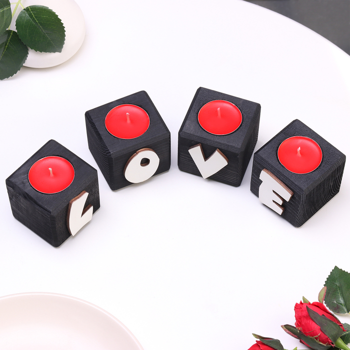 Подсвечник для интерьера 4 шт с надписью LOVE, цвет: "Эбен", аромат: клубника