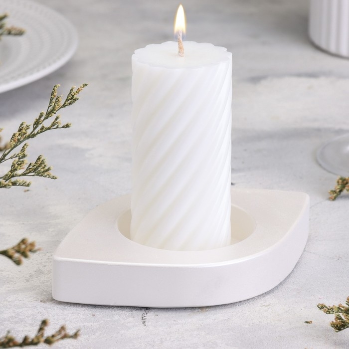 Подсвечник "Глаз. Мрамор" из гипса, 14,5х9,5х2см,белый перламутр