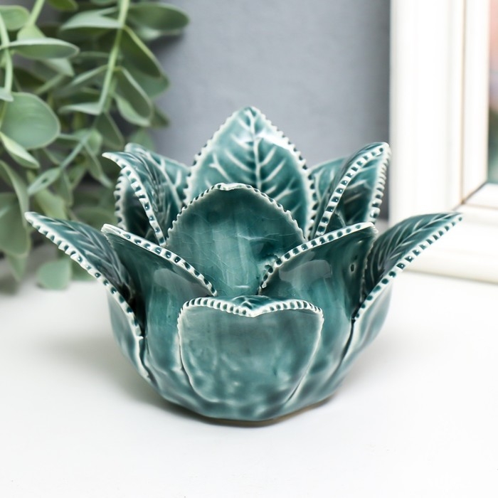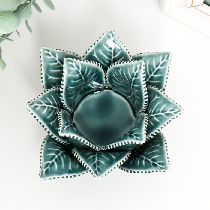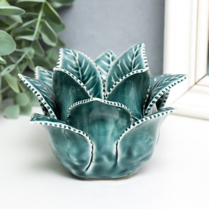 Подсвечник керамика на 1 свечу "Листья розы" d-4,2 см синий 13х13х9 см