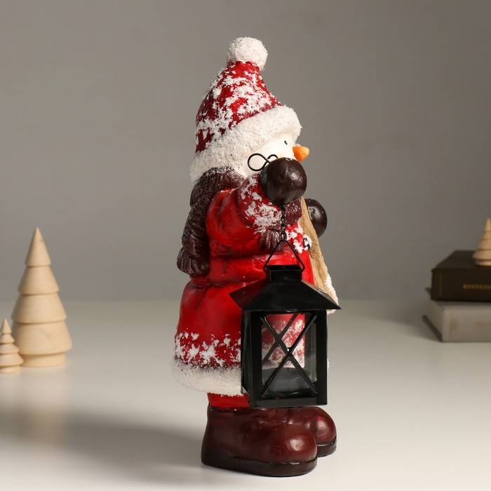 Подсвечник керамика "Снеговик в красной шубке, с фонарём и лыжами" 21,5х12х31 см