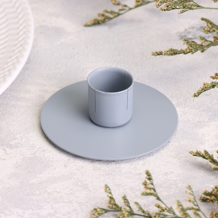 Подсвечник "Круг" металл на 1 свечу, 7х3 см, серый