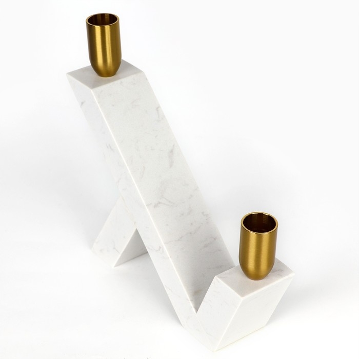 Подсвечник латунь, мрамор «Грани» 22 х 20 х 5 см