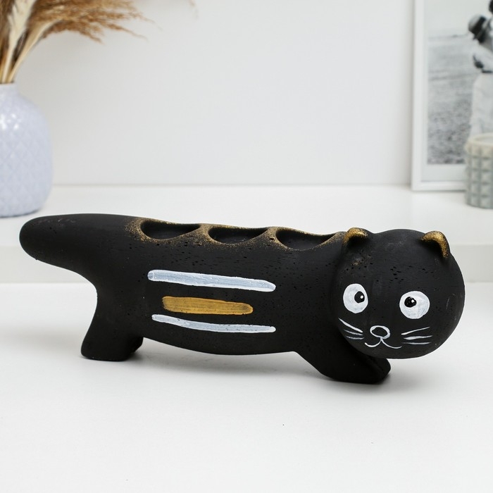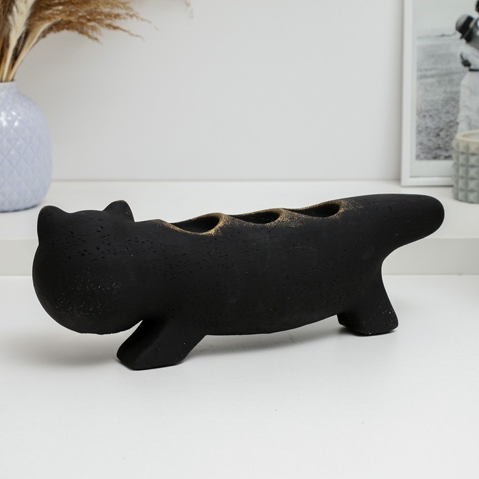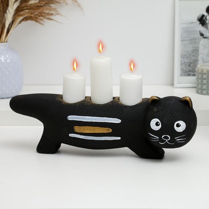 Подсвечник "Леопольд" черный с росписью, 12см