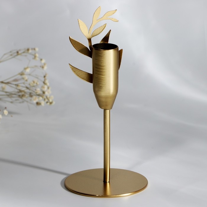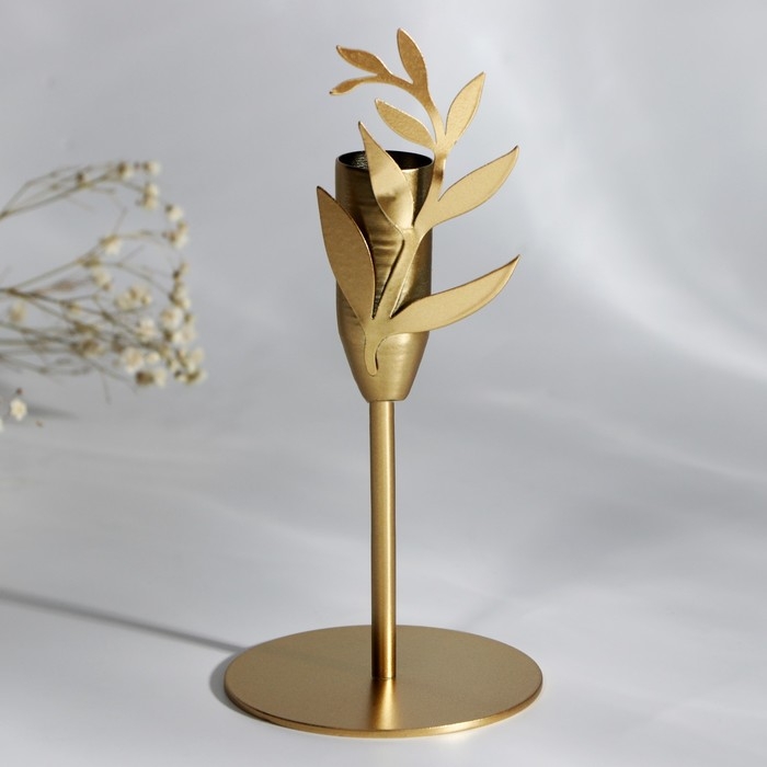 Подсвечник «Листики», зол., 7,4 х 15,3 см