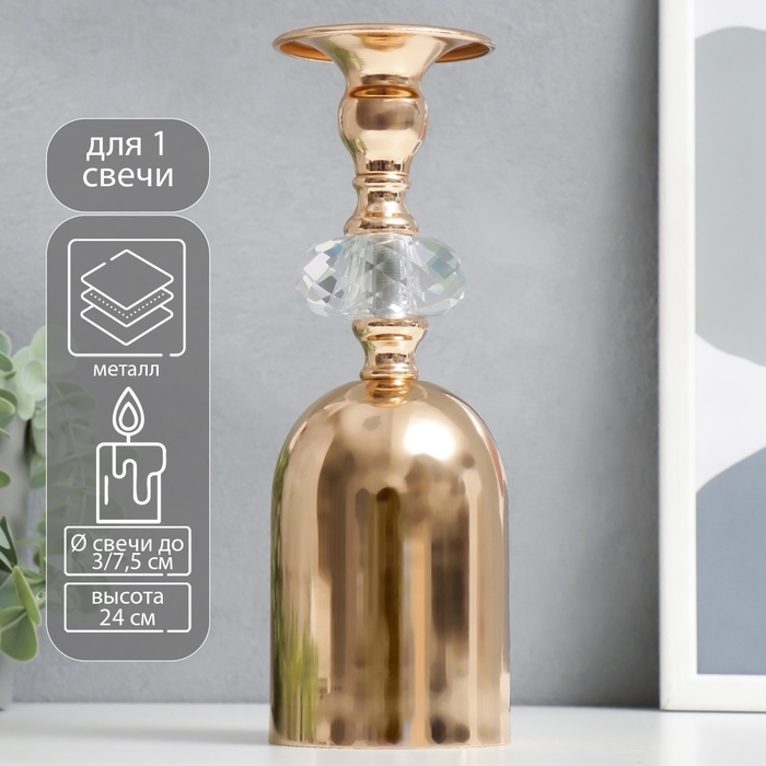 Подсвечник металл, акрил на 1 свечу "Перевёрнутый бокал с кристаллом" золото 24х7,5х7,5 см