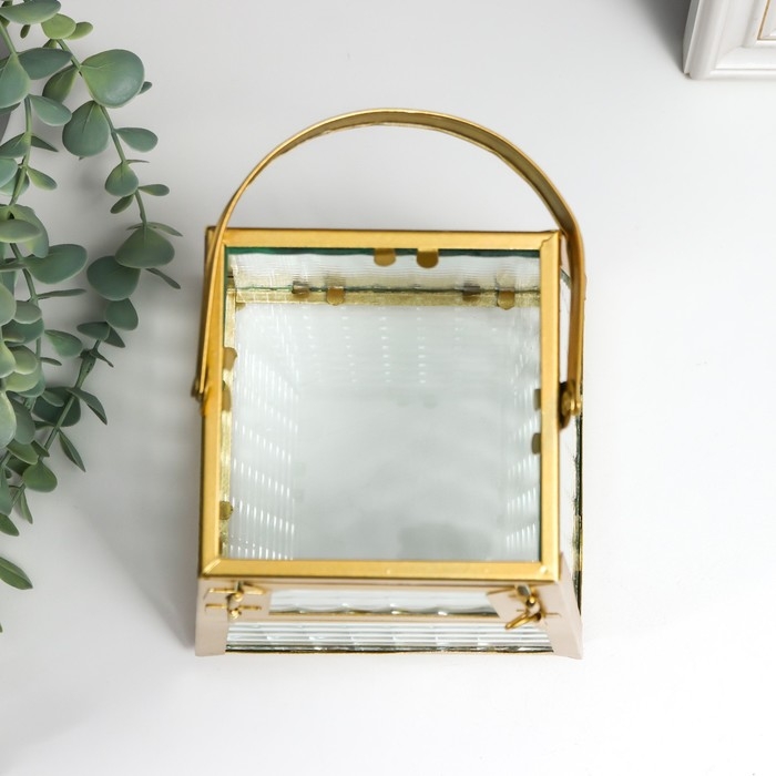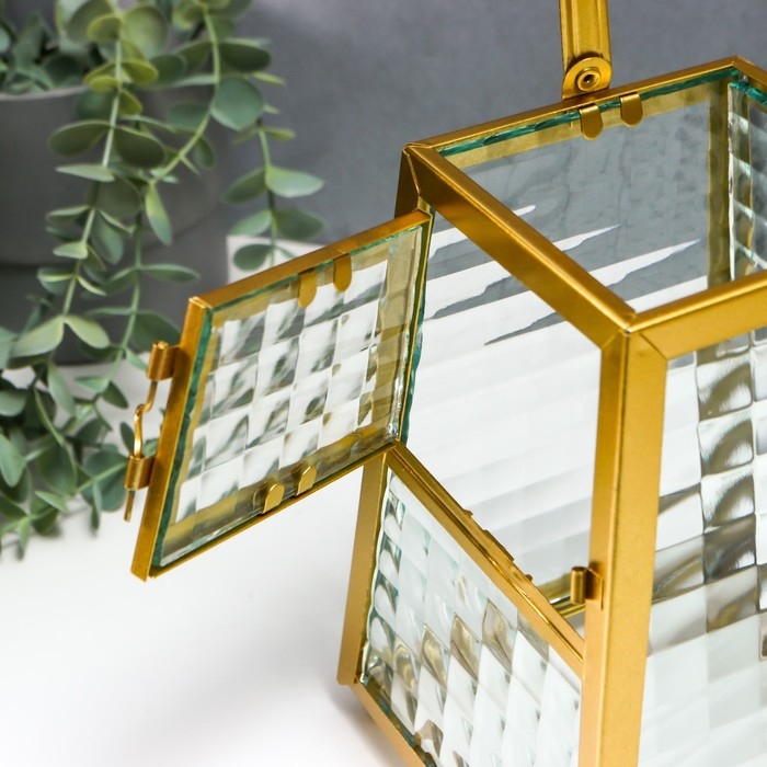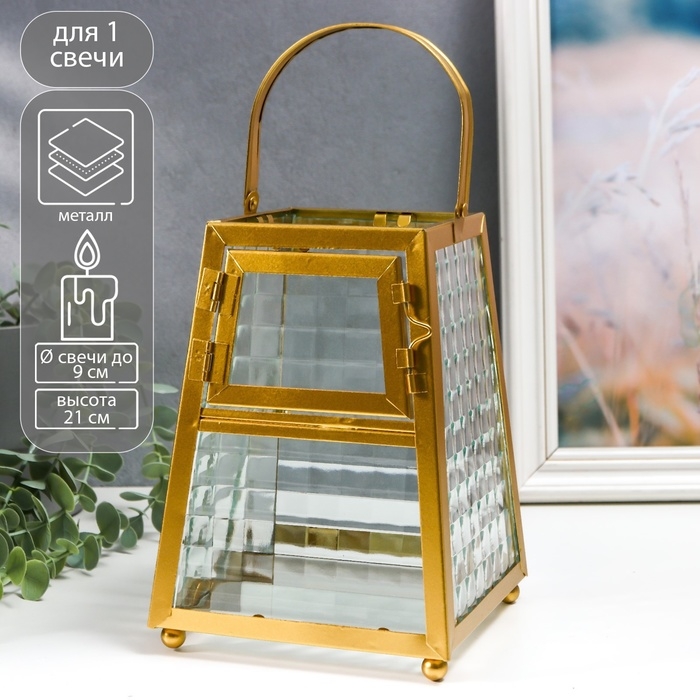 Подсвечник металл "Грани с витражными стёклами" золото 15х14.5х21 см