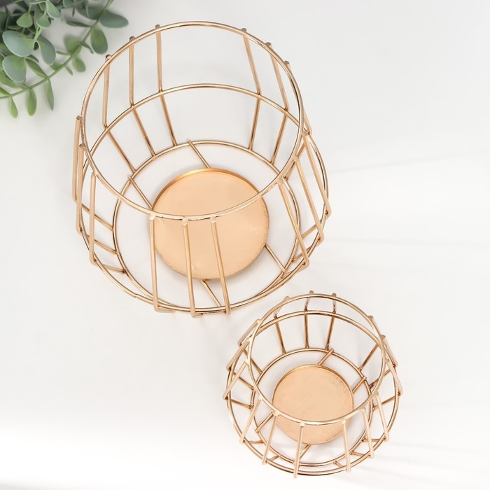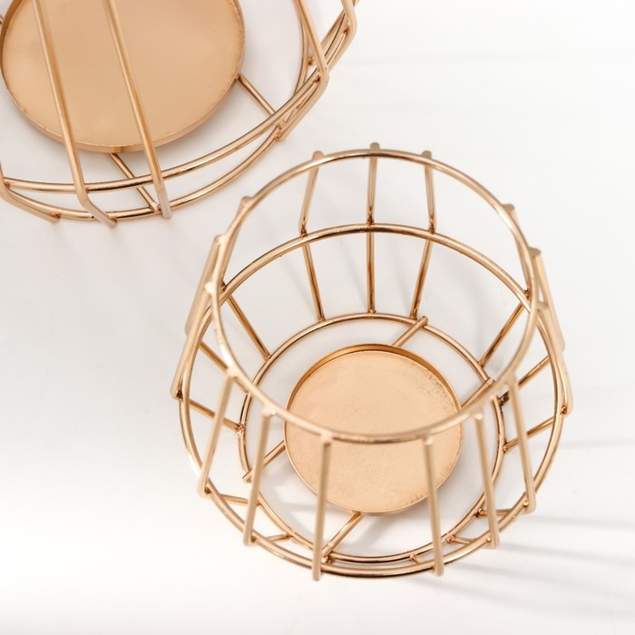Подсвечник металл "Лофт. Каркас" золото набор 2 шт 10х10х10 15х16,5х16,5 см