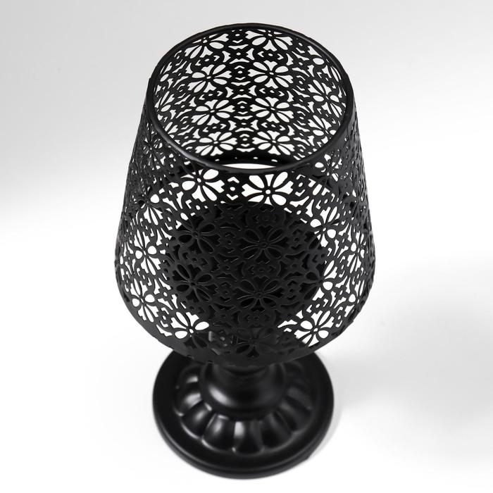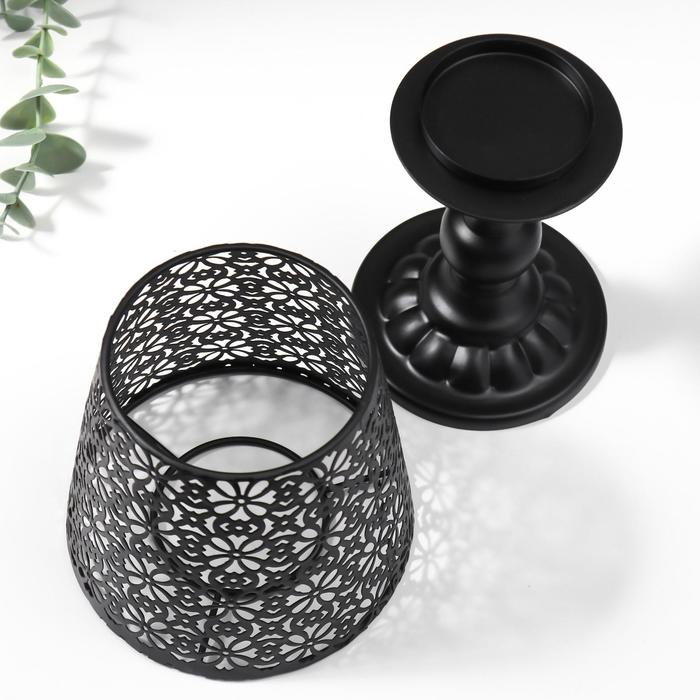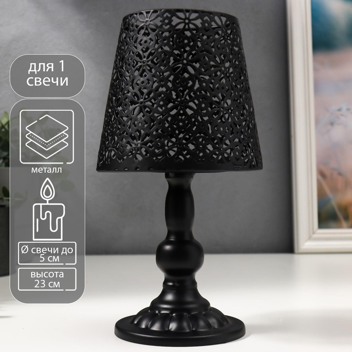 Подсвечник металл на 1 свечу "Абажур с цветами" чёрный 23х11х11 см