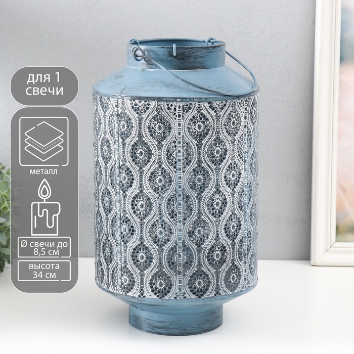 Подсвечник металл на 1 свечу "Арабика" d=8,5 см состаренное серебро 19х34 см