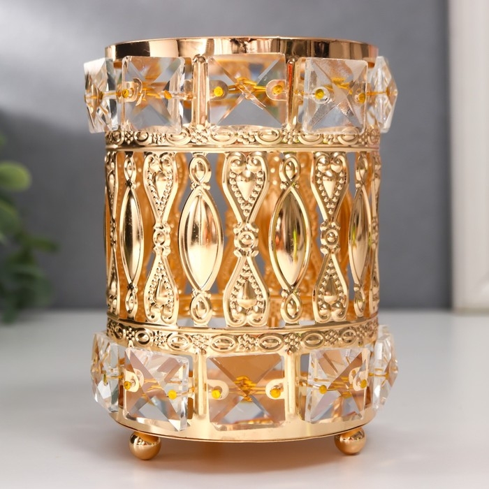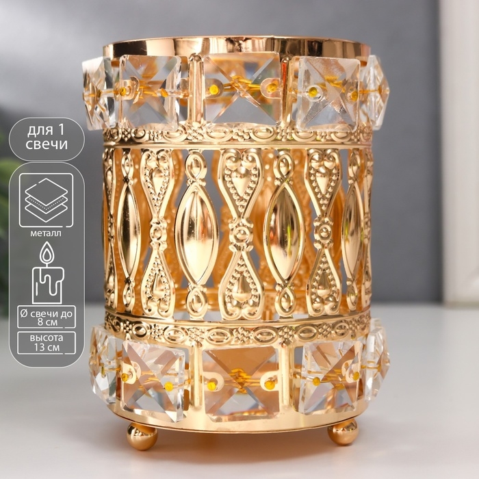 Подсвечник металл на 1 свечу "Бесконечная любовь" цилиндр золото 13х9х9 см