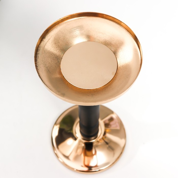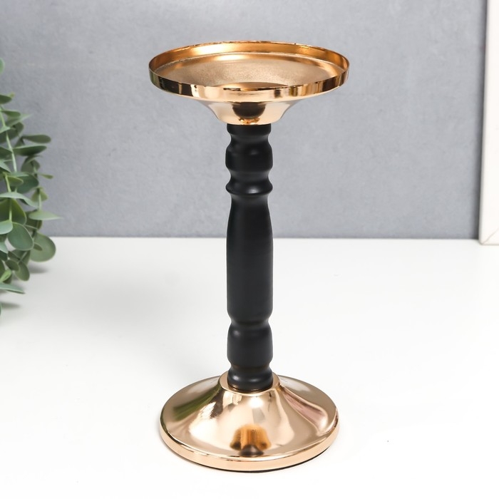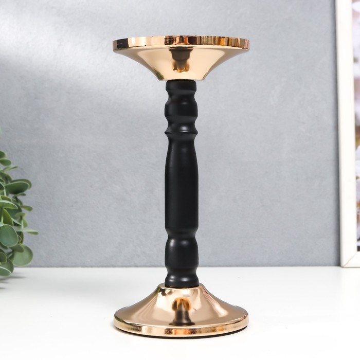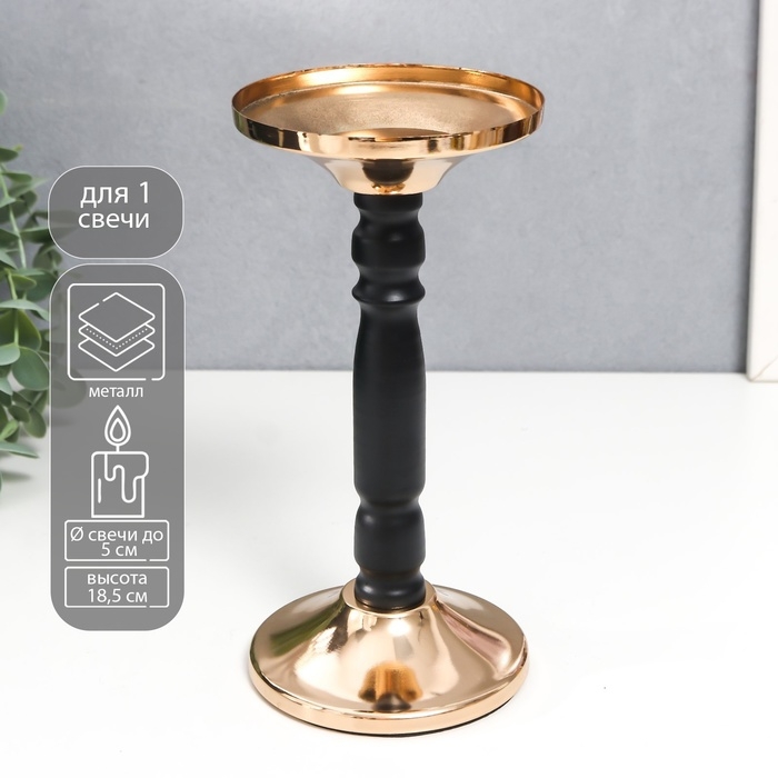 Подсвечник металл на 1 свечу "Чёрная колонна" золото 18,5х9х9 см