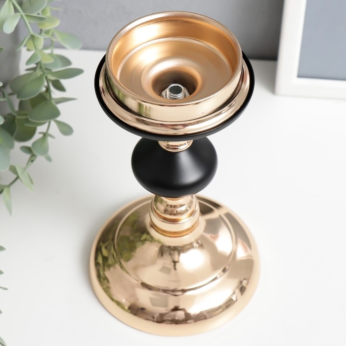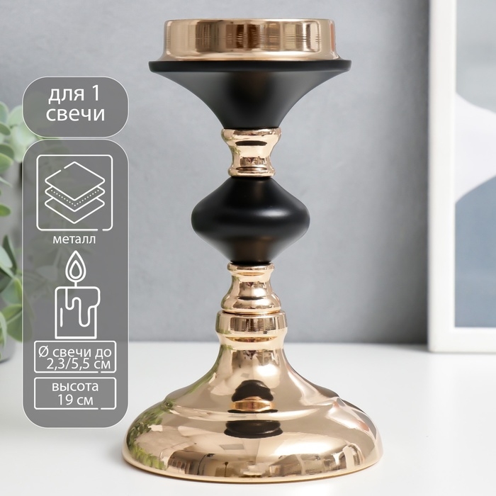 Подсвечник металл на 1 свечу "Чёрная ночь" золото 19х11х11 см