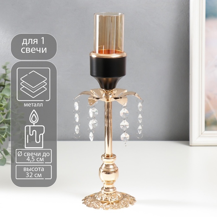 Подсвечник металл на 1 свечу "Цветок. Ажурная подставка" золото, чёрный 32х9,5х9,5 см