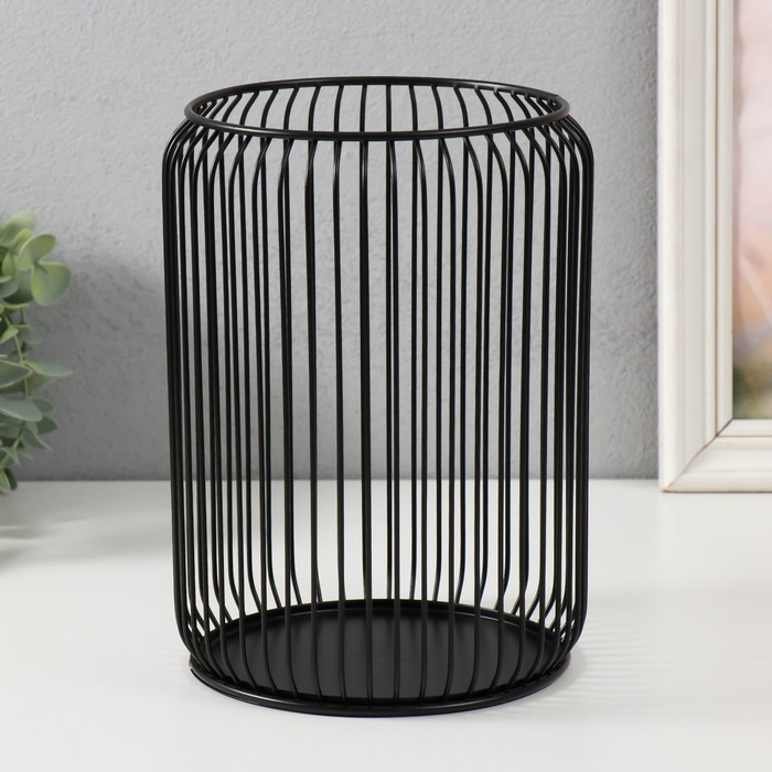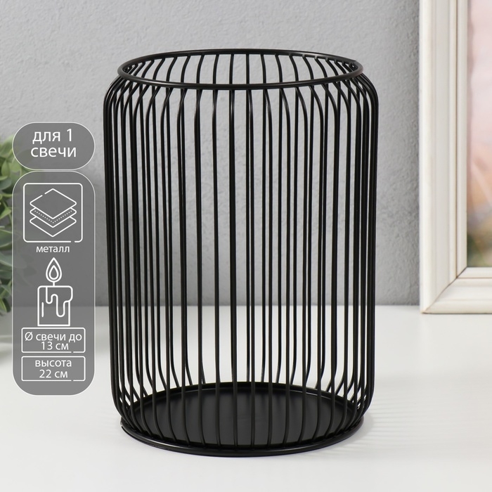 Подсвечник металл на 1 свечу до 13 см "Клетка" чёрный 16,5х16,5х22 см