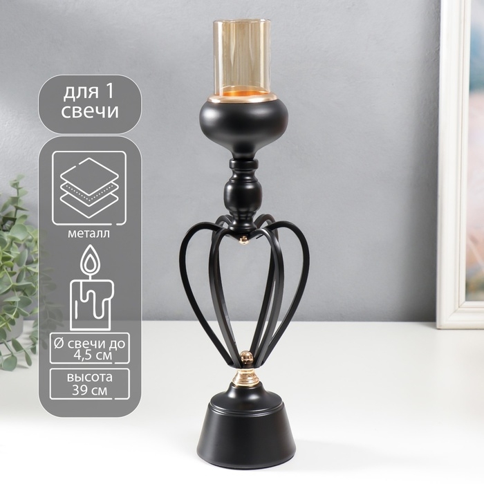 Подсвечник металл на 1 свечу "Физалис" чёрный 39х9х9 см