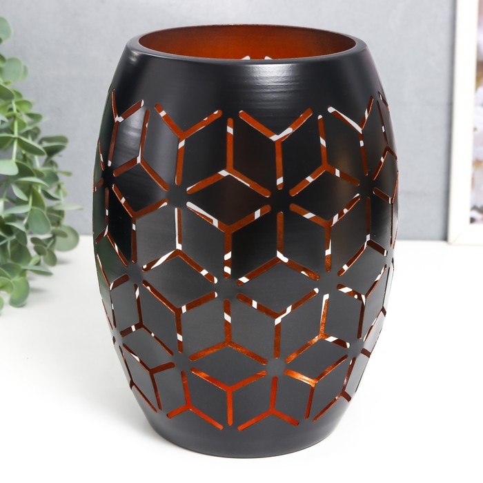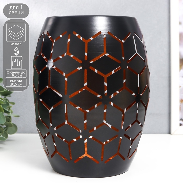 Подсвечник металл на 1 свечу "Геометрия. Цветы" чёрный с золотом 20,5х13,5х13,5 см