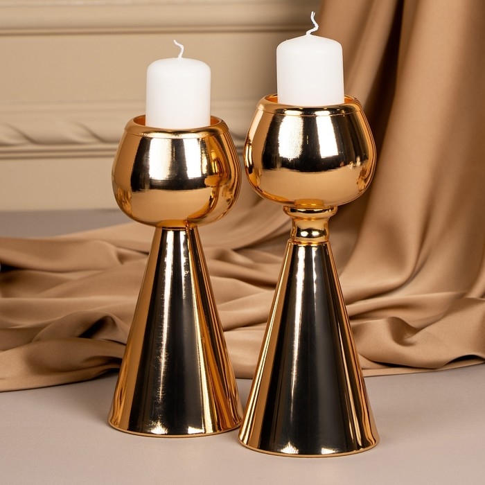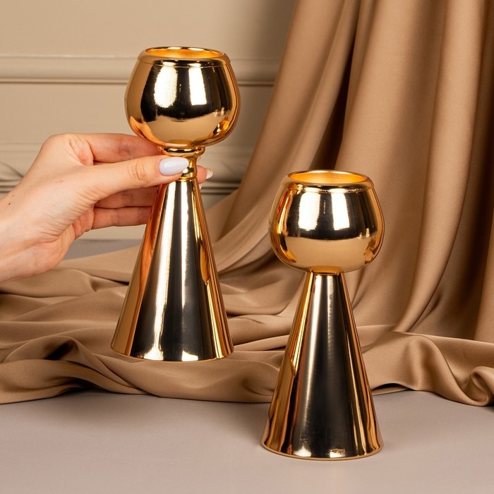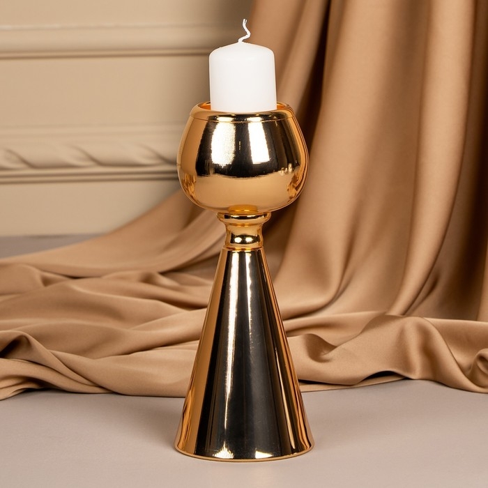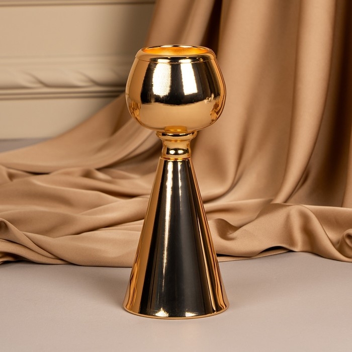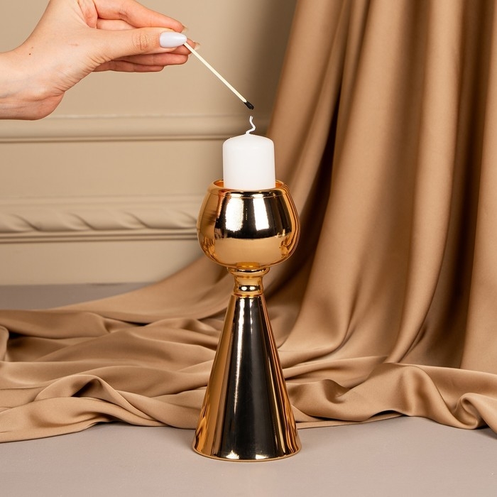 Подсвечник металл на 1 свечу «Гиацинт» цвет золото 8 х 8 х 21 см
