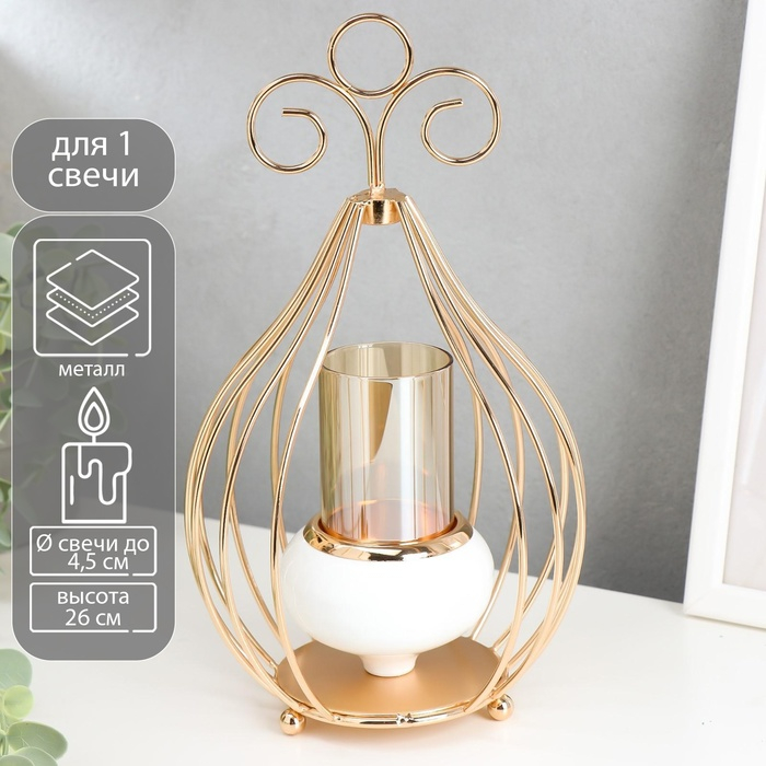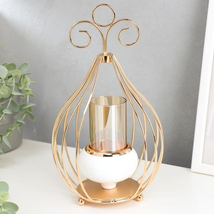 Подсвечник металл на 1 свечу "Капля" золото и белый 26х14,5х9 см
