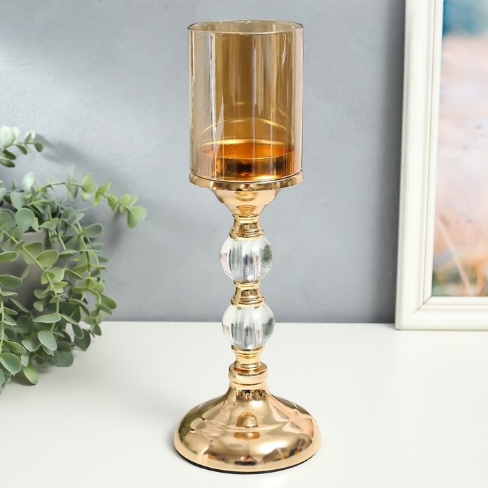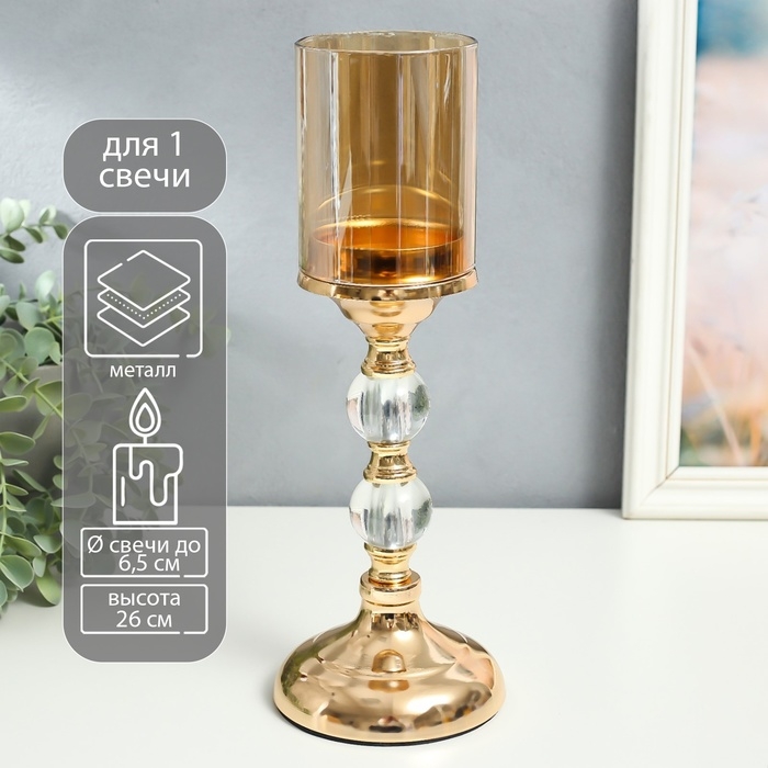 Подсвечник металл на 1 свечу "Классика - два прозрачных шара" золото 26х11х11 см