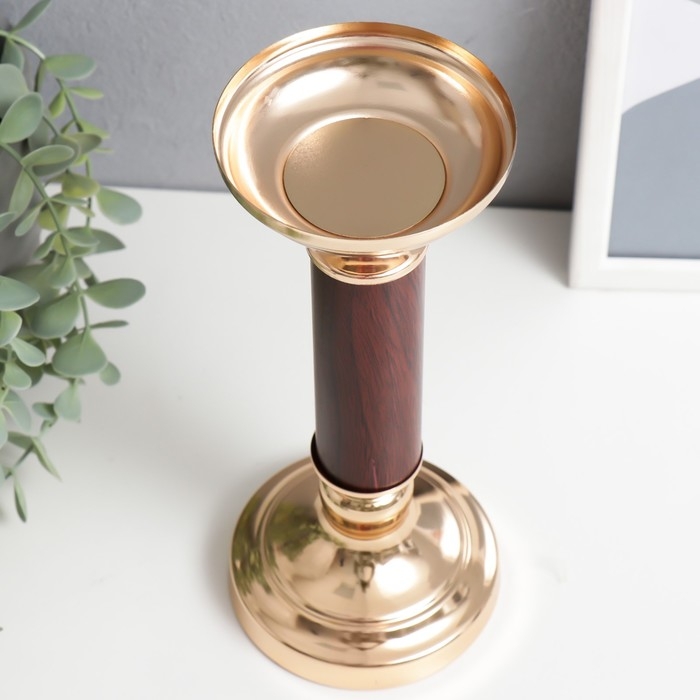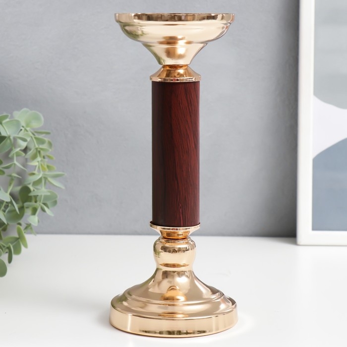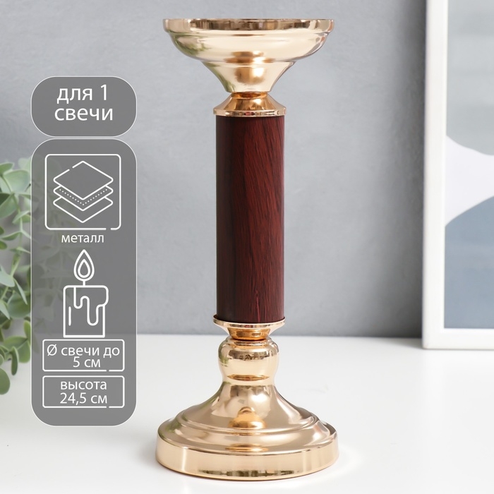 Подсвечник металл на 1 свечу "Классика" под дерево, золото 24,5х10х10 см