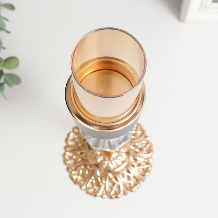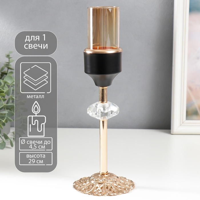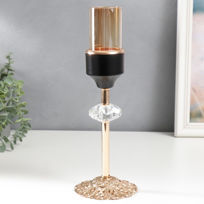 Подсвечник металл на 1 свечу "Кристалл. Ажурная подставка" золото, чёрный 29х10х10 см