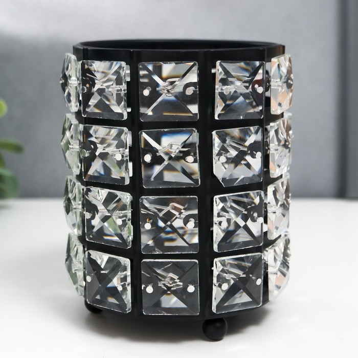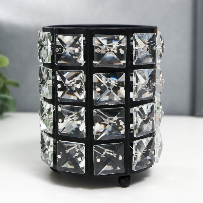 Подсвечник металл на 1 свечу "Кристаллы" цилиндр чёрный 12х9х9 см