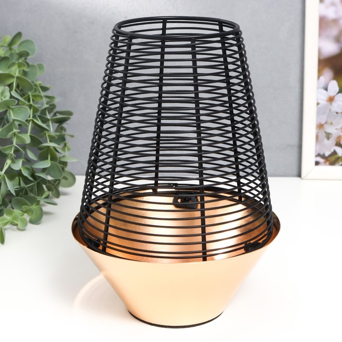 Подсвечник металл на 1 свечу "Лофт. Прутья" чёрный с золотом 23х16х16 см