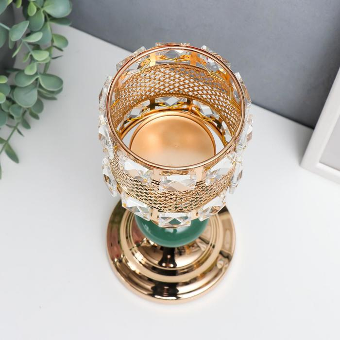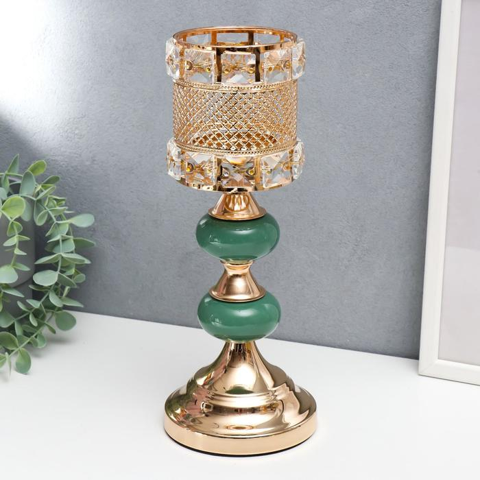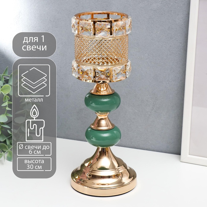 Подсвечник металл на 1 свечу "Малахитовые камни" золото 30х11,5х11,5 см