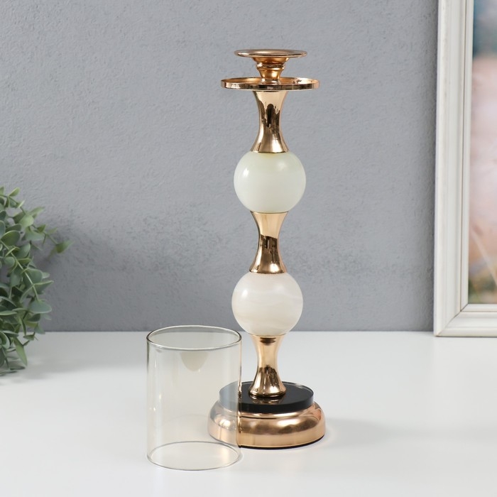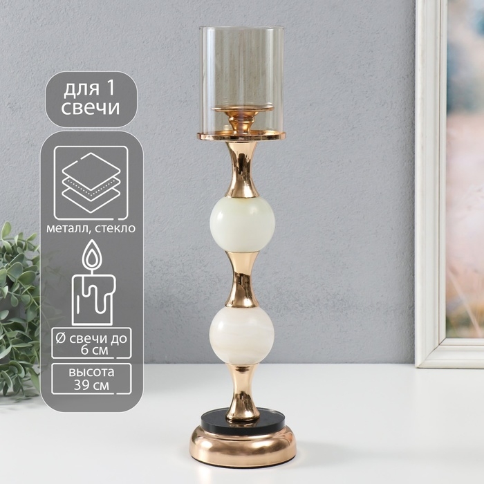 Подсвечник металл на 1 свечу "Мраморный шар" золото 39х10х10 см