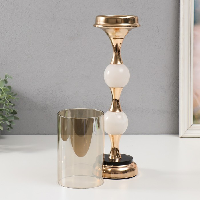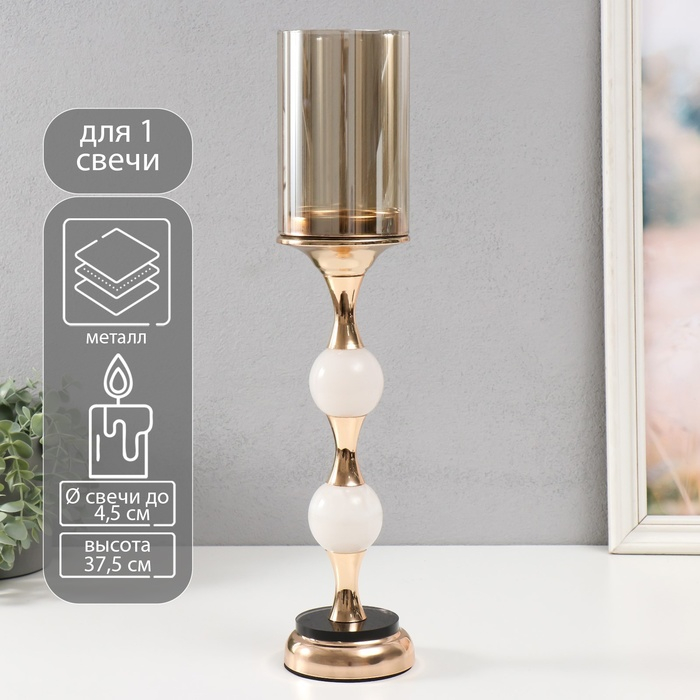Подсвечник металл на 1 свечу "Мраморный шар" золото 49х10х10 см
