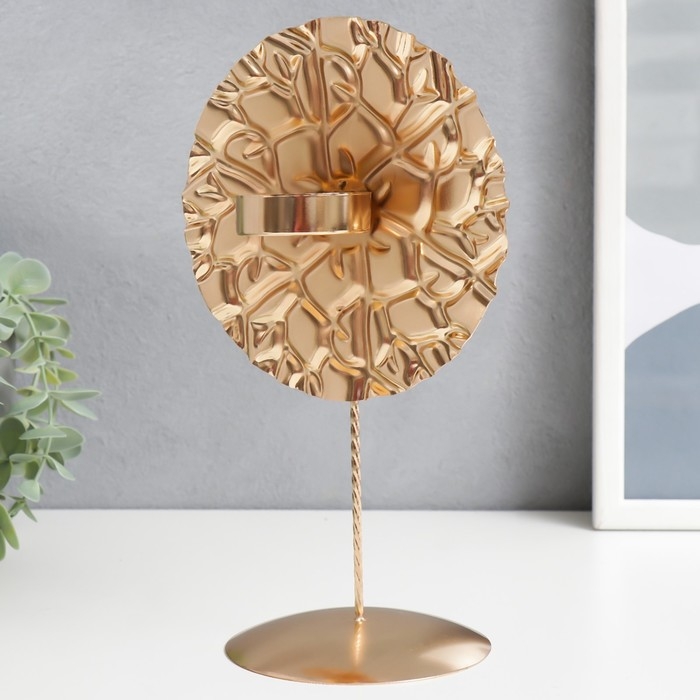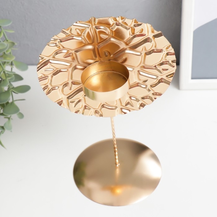 Подсвечник металл на 1 свечу "Паутина времени" золото 26х14,5х11 см