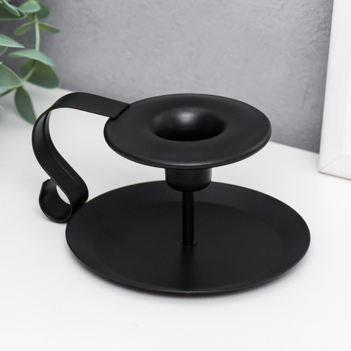 Подсвечник металл на 1 свечу с ручкой "Виток" чёрный 5,5х10,5х13,2 см