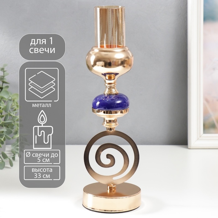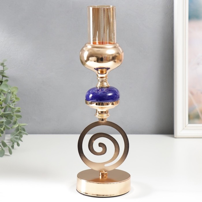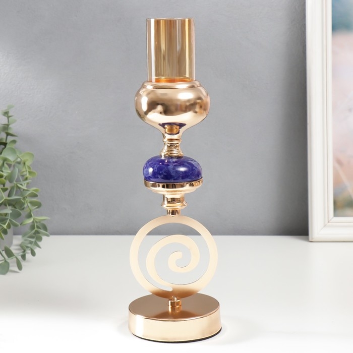Подсвечник металл на 1 свечу "Спираль. Синий мраморный элемент" золото 33х10х10 см