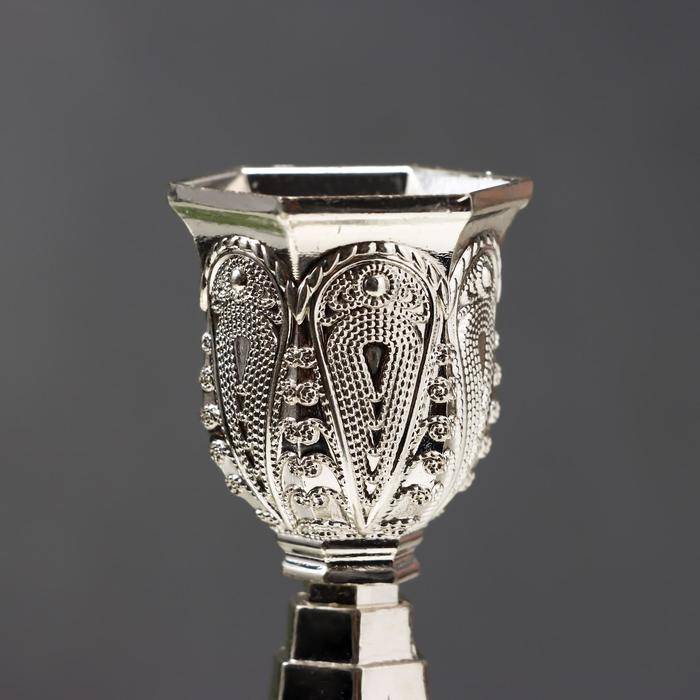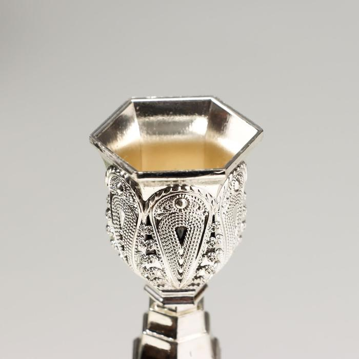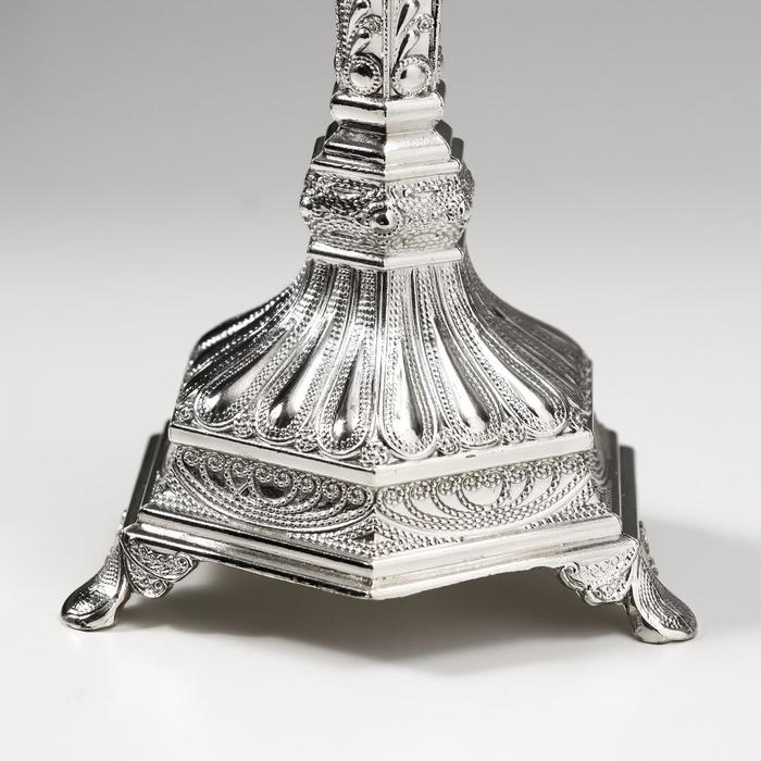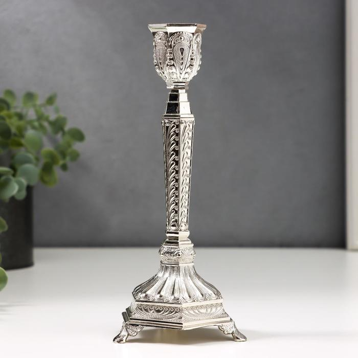 Подсвечник металл на 1 свечу "Узорный" серебро 19,8х8х8 см