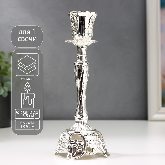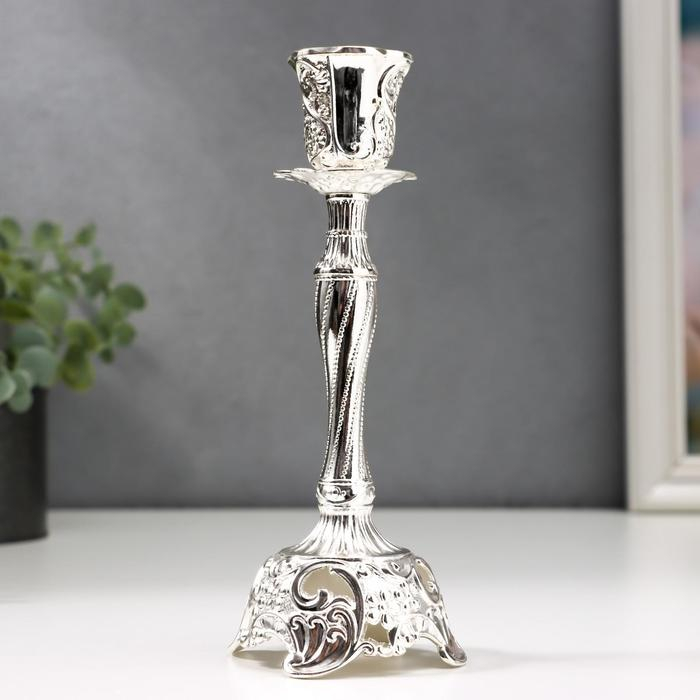Подсвечник металл на 1 свечу "Виноградная лоза" серебро 18,5х6х6 см